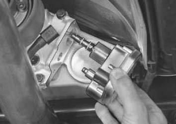 Wait 3-4 minutes after the ignition has been switched off to reduce oil leaks on removal