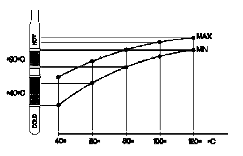 The "cold range" (+40°C) is reached after approximately 15 minutes idling in the workshop, while the "hot range" (+80°C) is reached after approximately 30 minutes highway driving at an air temperature above +15°C.
