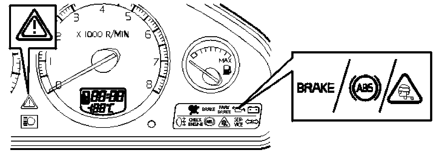 The brake system uses four warning lamps positioned in the combined instrument panel.
