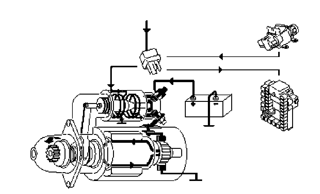 The pull-in winding is grounded through the rotor and carbon brushes. This ground connection is lost when the moving switches close the circuit and the current passes from the solenoid to the starter motor.