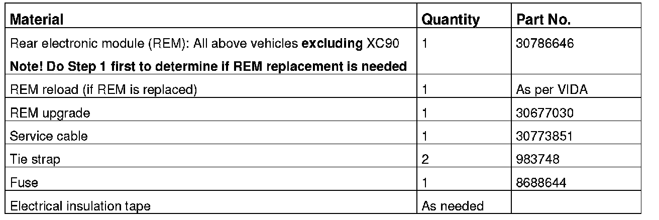 If the REM responds with either part numbers 8676391 or 30728512, proceed to Step 2. If the REM does not respond with either of the part numbers 8676391 or 30728512, then it must be replaced according to VIDA: