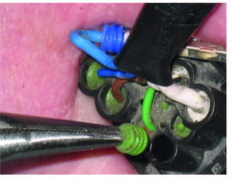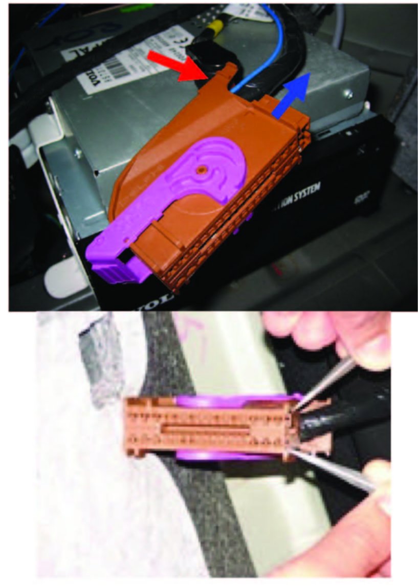 Cut the tie strap securing the wiring to the connector housing (red arrow in photo).