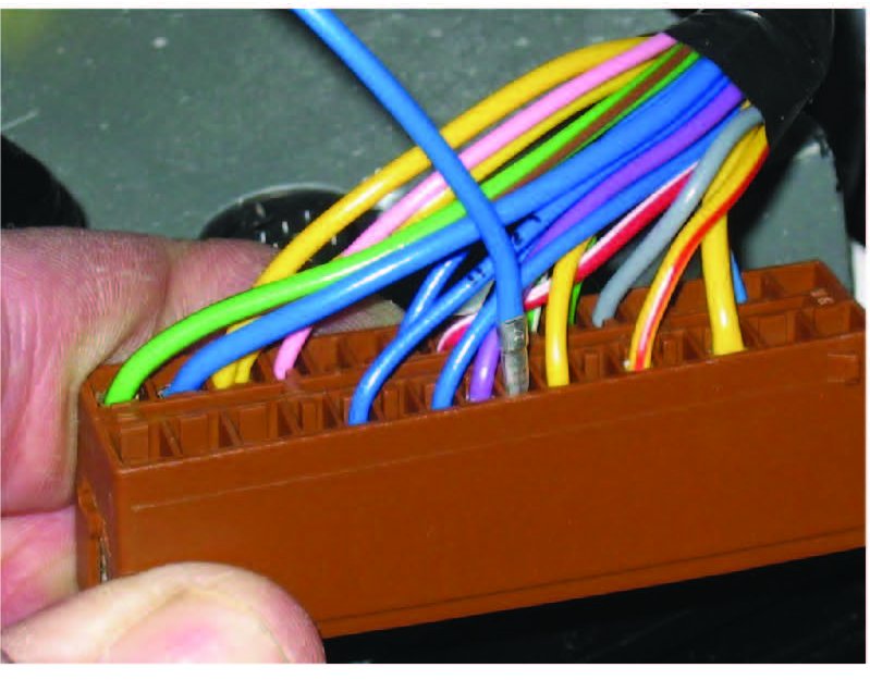Remove the brown 32-pin connector on the rear control module (REM)