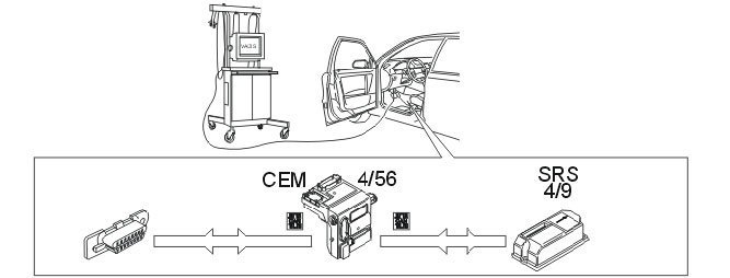 If a fault occurs in the SRS system, the driver is warned in various ways via the driver information module (DIM):