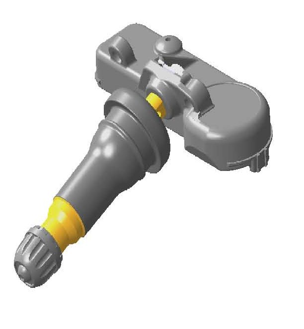 A newer version of the TPMS sensor (pictured left), with a rubber valve stem and a snap-in transmitter, was introduced in production from the following chassis numbers: