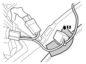 - Attach pieces of butyl tape on the right-hand side of the tunnel console to secure the cable harness.
