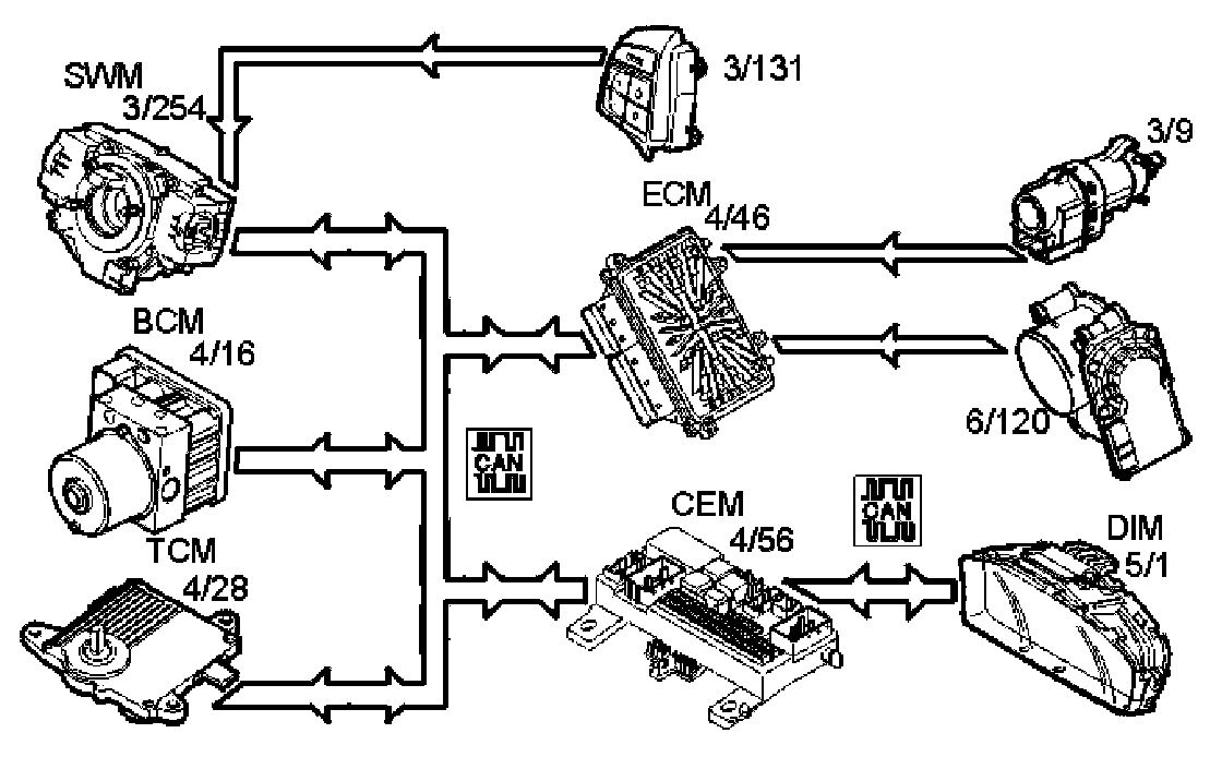 - steering wheel module (SWM) (3/254) (cruise control buttons)