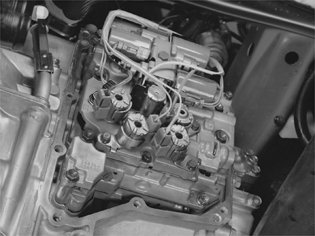 Install the oil return pipe for the oil cooler and the cover on the transmission.