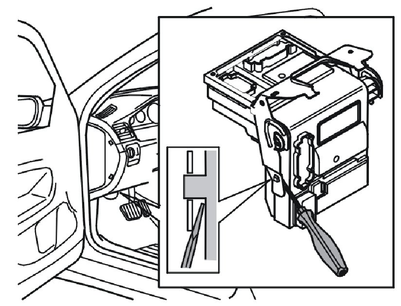 - the control module by inserting a screwdriver up between the bracket and the relay box. Turn the screwdriver so that the bracket opens out. At the same time, pull the relay box out of the bracket towards the underside of the dashboard