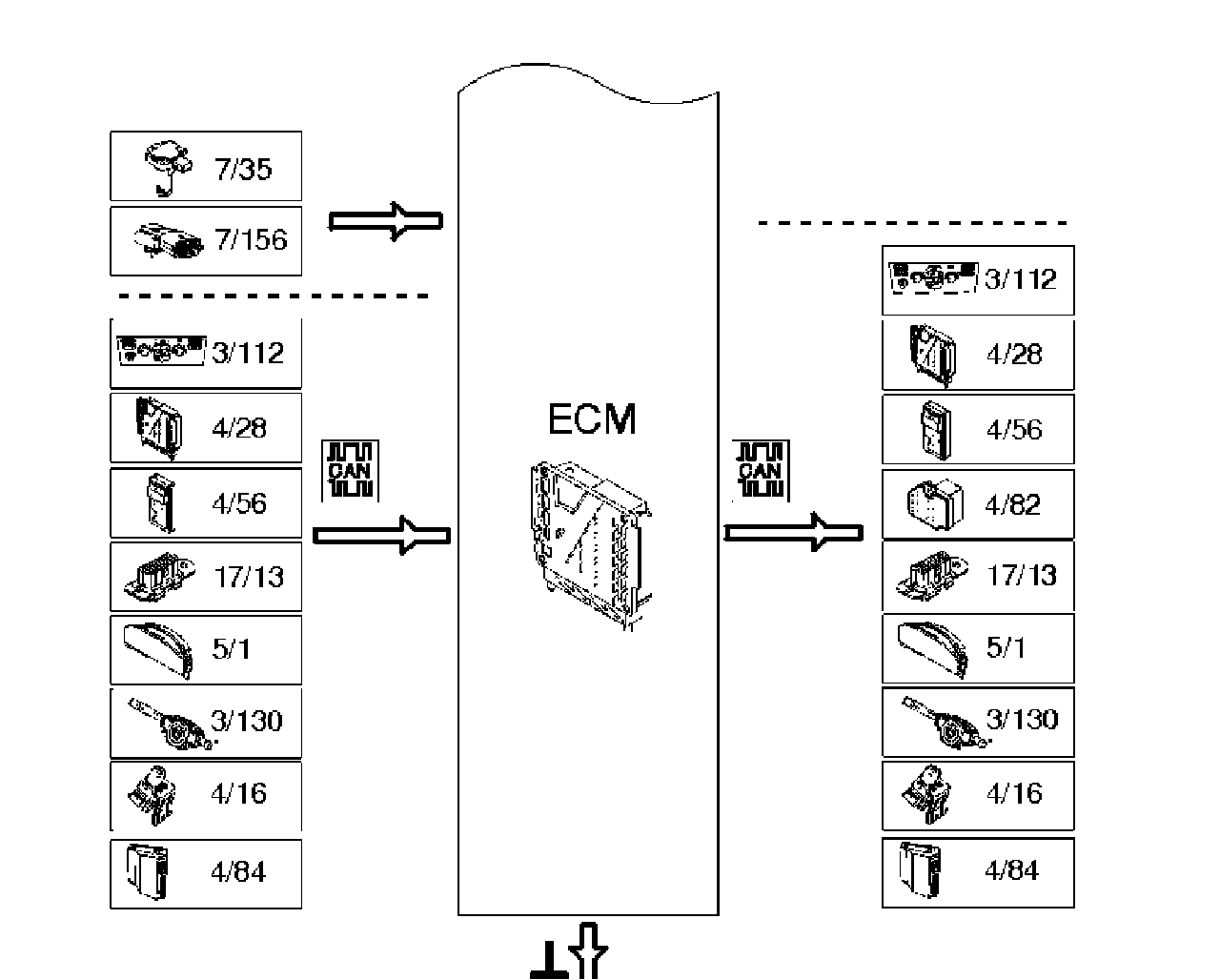 The engine control module (ECM) communicates with other control modules using controller area network (CAN) communication.