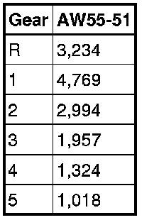 The value indicates the transmission's gear ratio. The Transmission Control Module (TCM) uses input speed and output speed (vehicle speed) to calculate the gear ratio. For actual gear ratio, see the table below.