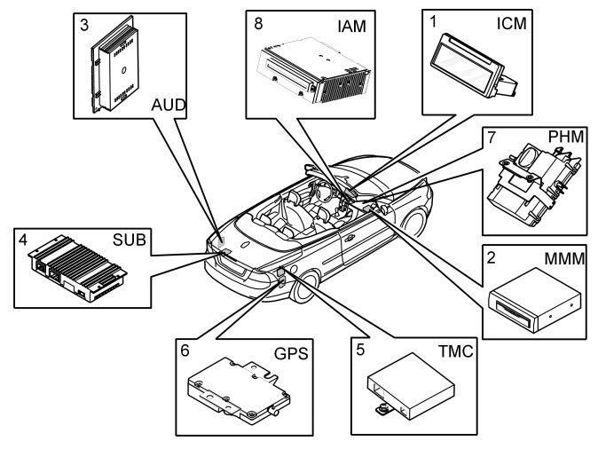 When the vehicle is equipped with the Subwoofer module (SUB), the Infotainment control module (ICM) as well as the Audio module (AUD) are also included as standard on the MOST network.