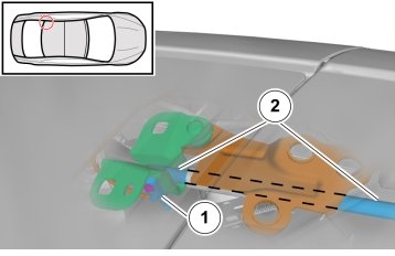 Hold the brake pedal depressed. Close the roof with the button in the vehicle. The roof operates until it is in the locked position and Hall sensor 6 is active.