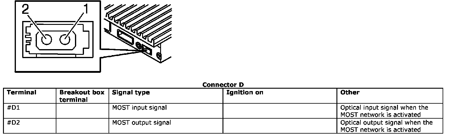 All the values given below are between the respective terminal in column 1 and terminal #A2 in column 2 (power ground) unless otherwise stated in brackets after the table entry.