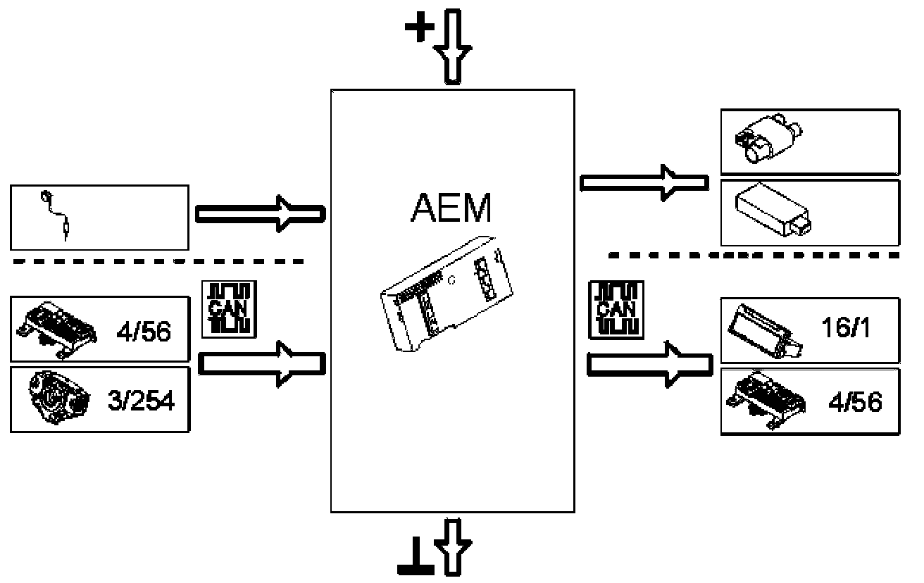In this case the accessory electronic module (AEM) functions as a port between the Controller area network (CAN) of the vehicle and the after market alarm unit.
