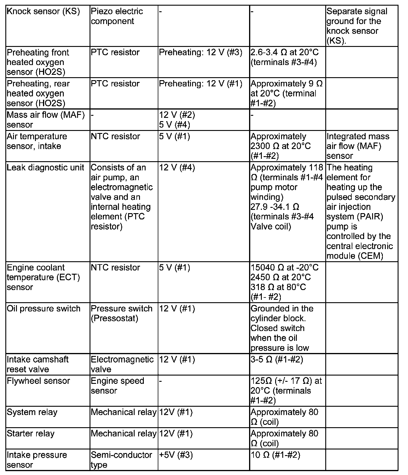 The component specification gives the value of the component when the connector is disconnected. Where no value is given, it is not possible to measure a relevant value at the component.