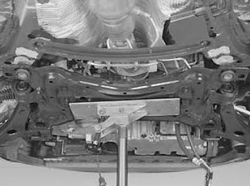 Using the hydraulic modulator for the lifting table, lift up the engine / transmission slightly in order to slacken off the engine mountings.