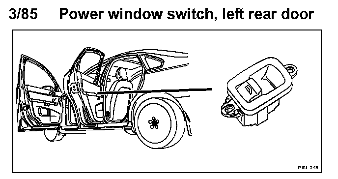 3/85 Power Window Switch, Left Rear Door: