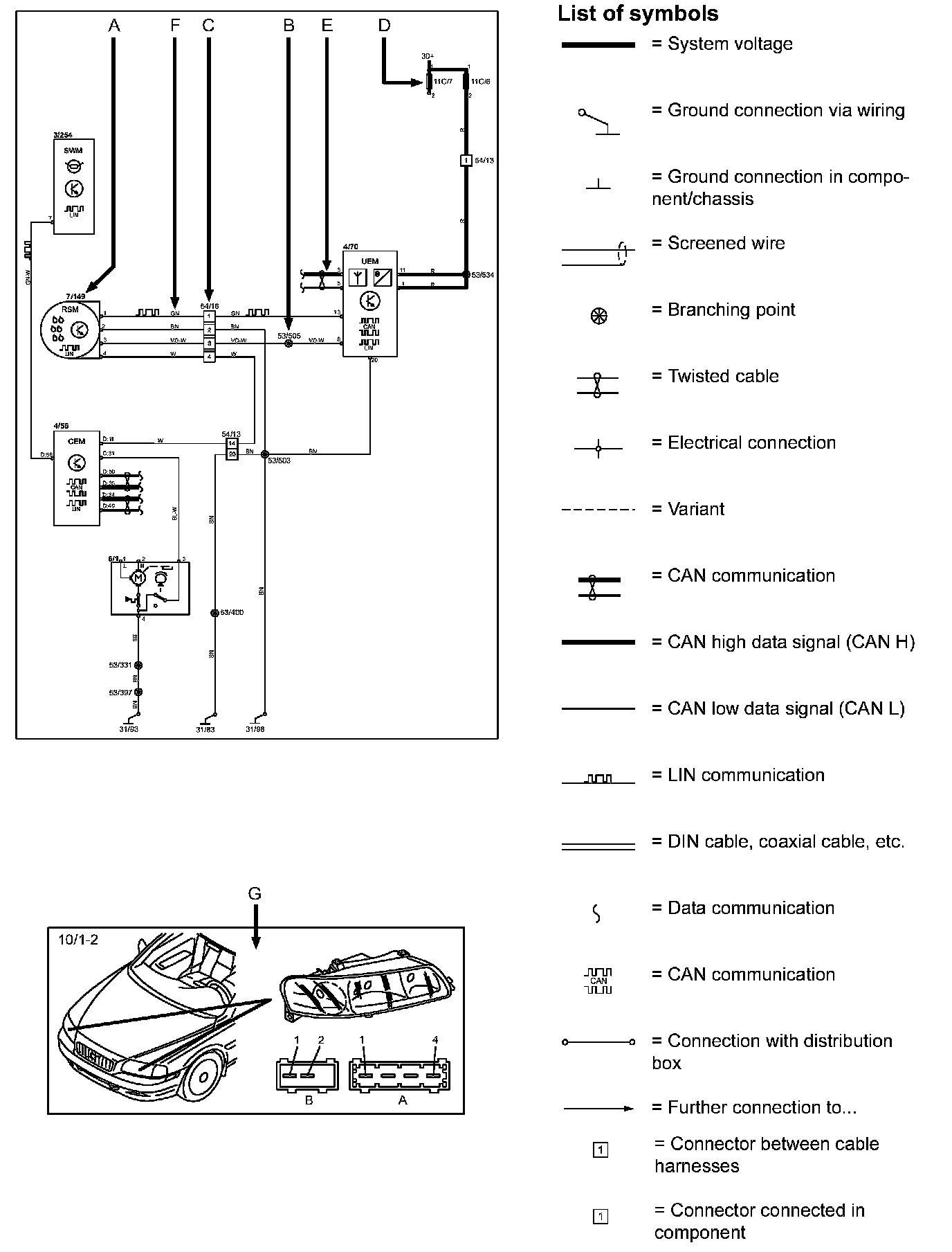 Today's cars contain CAN and LIN networks that transfer information. Connections to these networks are not shown in their entirety in the respective wiring diagram. Complete information on CAN and LIN communication is found in "Control modules" in the Information Bus.