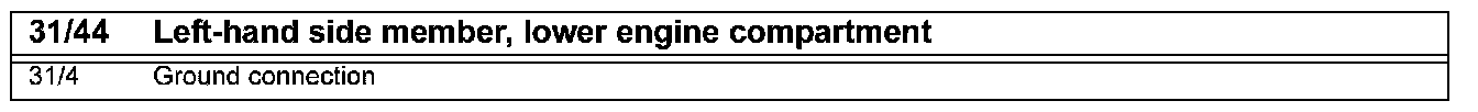 31/44 Ground Connection, Left Side Member Lower Engine Compartment: