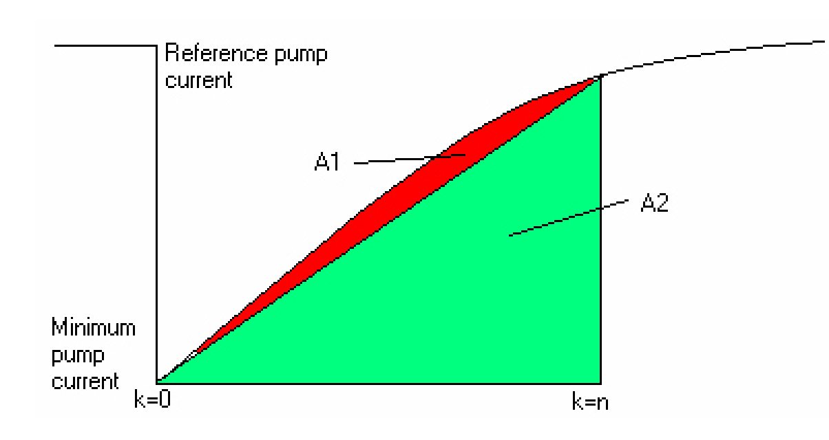 If the conditions for a small leak check (≥0.02-inch) are set the pump motor remains on in monitoring mode until an elliptic combination of the relation pump current and area ratio are fulfilled, or a maximum time limit has been reached.The judgment is based on a test value which is a combination of the actual area ratio and gradient of area ratio with respect to relative pump current.