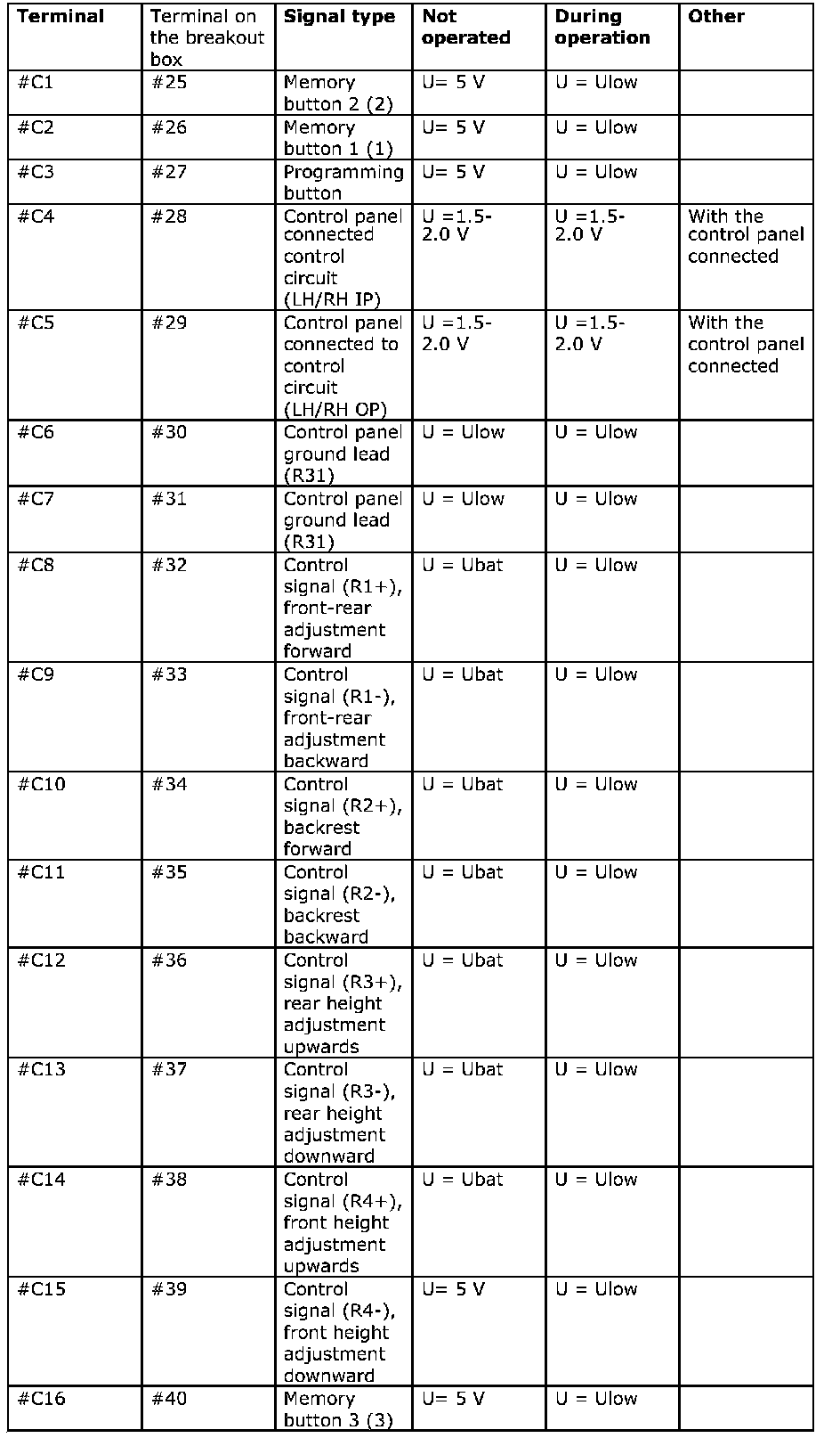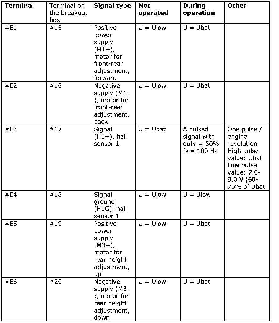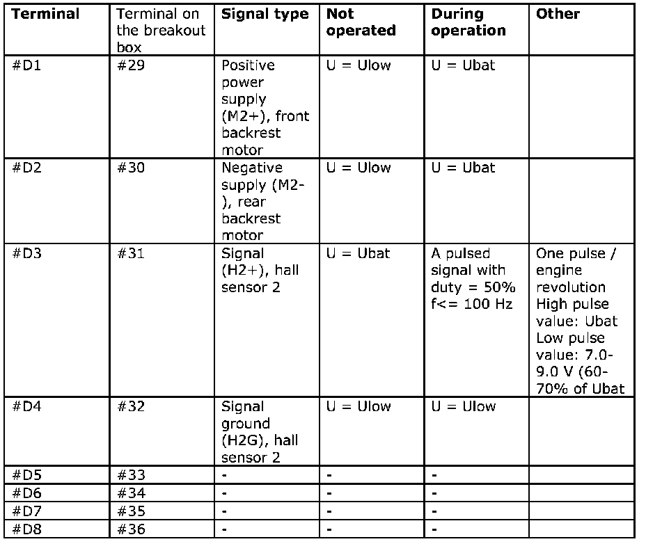 Signal Specification, Power Seat Module