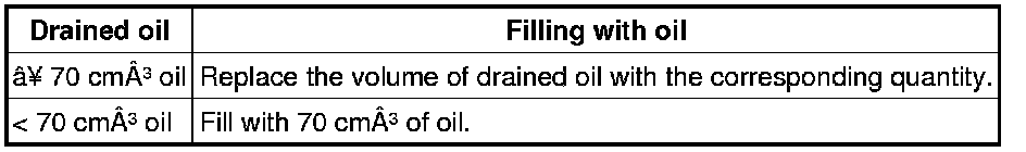 - Check according to the table above. Measure how much oil is to be added. After topping up the oil, reinstall the needle valve.