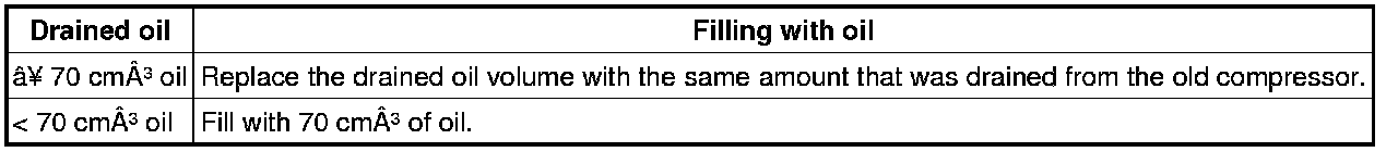- Drain the new compressor of oil (the amount may be below specified value since it is not possible to drain all oil from the compressor).