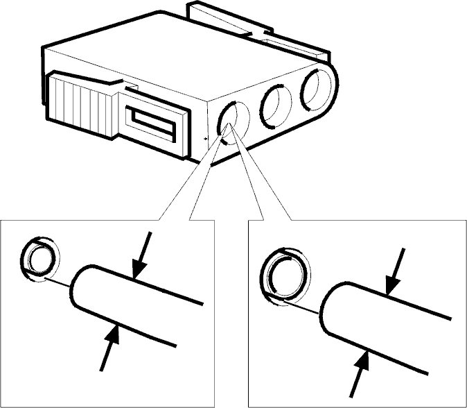 Press the cable terminal in the cavity forwards as far as it will go to free the locking tab from the cavity catch.