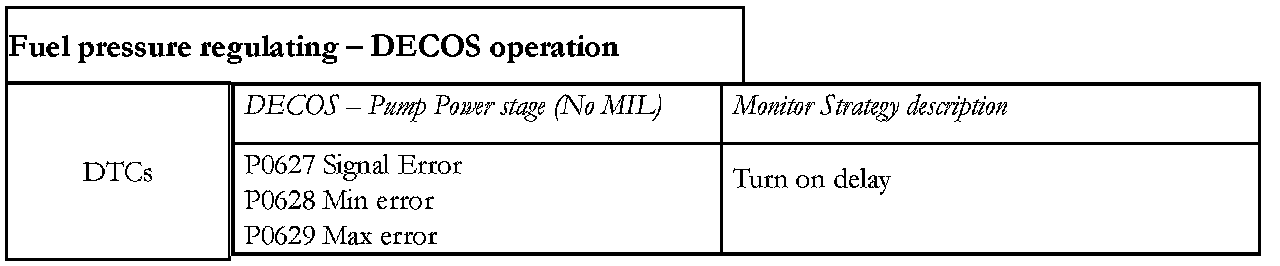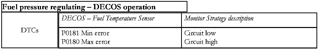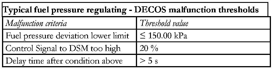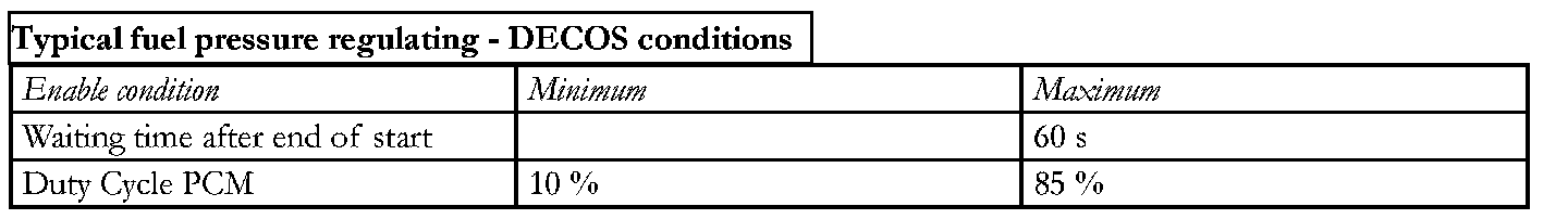 The fuel pressure regulating for demand controlled fuel pump (DECOS - DEmand COntrolled fuel Supply), means that the fuel pressure is infinitely variable by vary the power of the fuel pump. The systems construction implies among other things that a larger maximum pressure (approx. 5.5 bar) is allowed in the fuel pump. This pressure is used in extreme situations, for instance at high engine load. Following components are used for fuel pressure regulating: