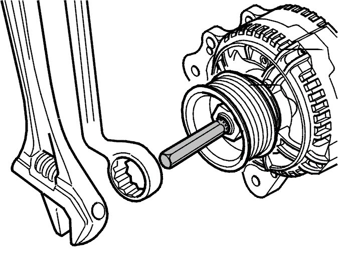 Note! On five cylinder models, the pulley can be replaced with the generator (GEN) still installed in the vehicle.