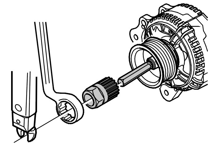 Install the pulley and the nut. Use ring wrench 951 2036 Ring wrench 951 2036 Ring Wrench and twelve point socket 951 2849 Twelve tooth spanner M10 951 2849 Twelve Tooth Spanner M10.