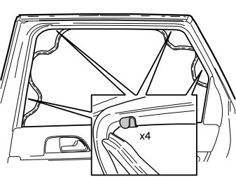- Hold the side sun blind up against the side window. Ensure that the Volvo decal is towards the rear of the car and secured at the top edge