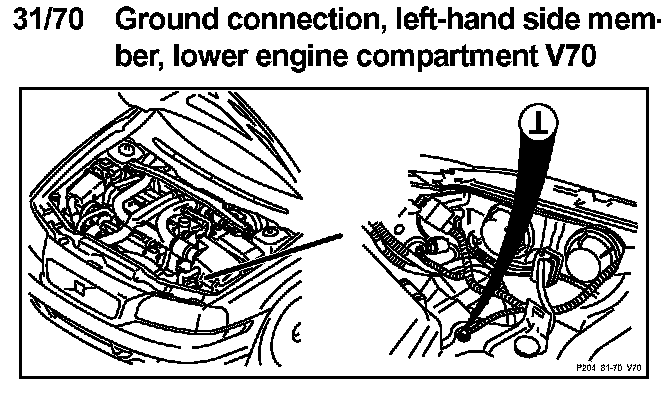 31/70 Ground Connection, Left-hand Side Member, Lower Engine Compartment: