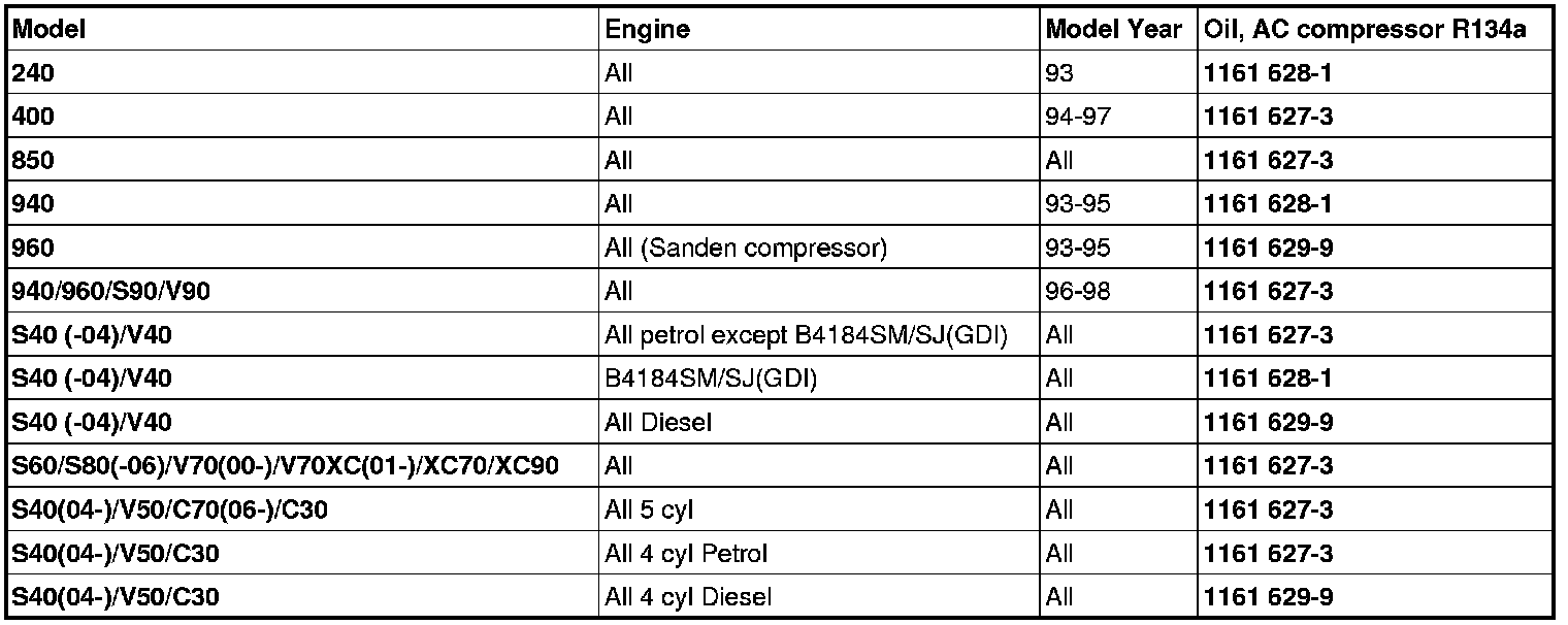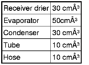 - Use the table below to fill the new compressor with the right amount of oil.