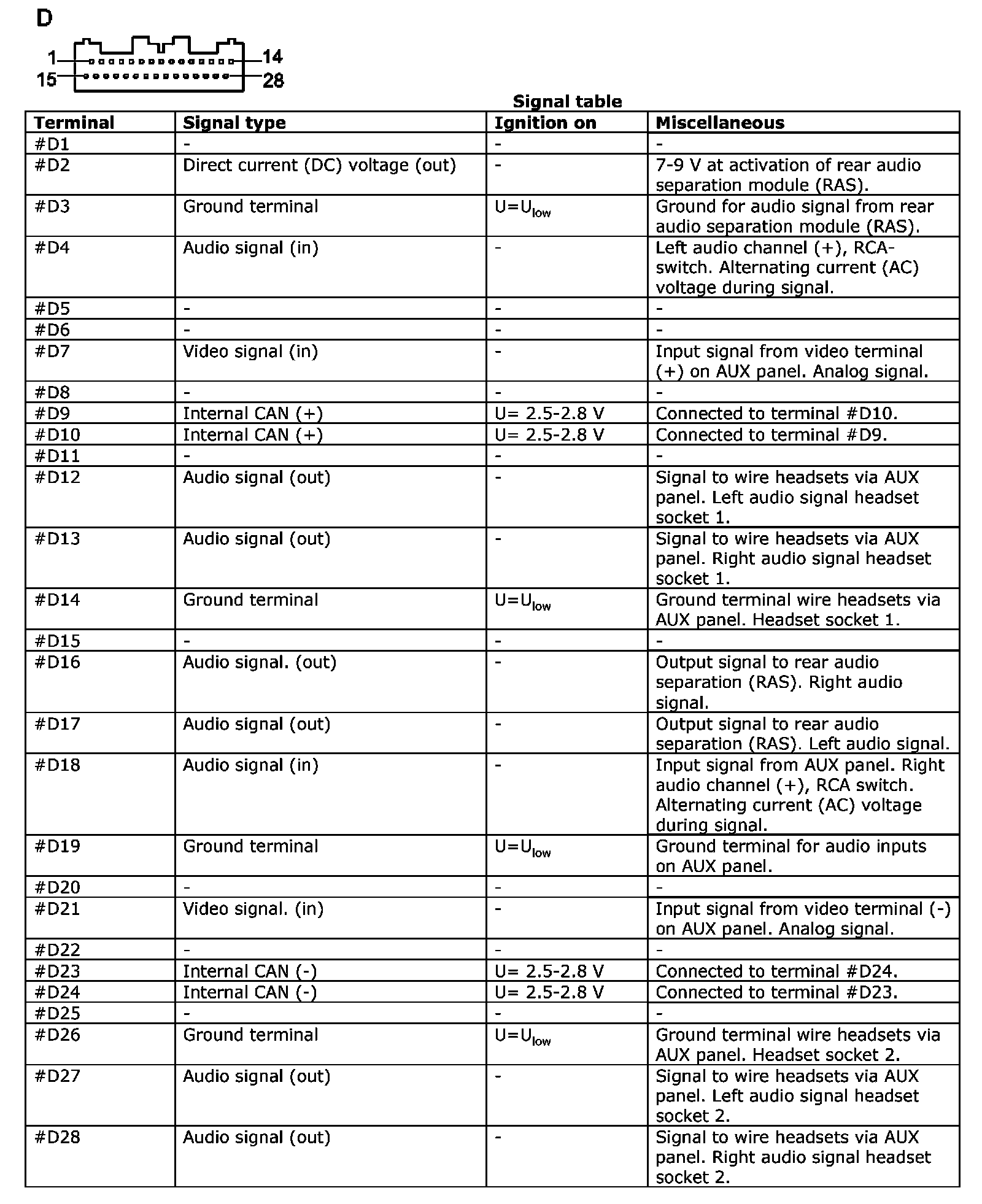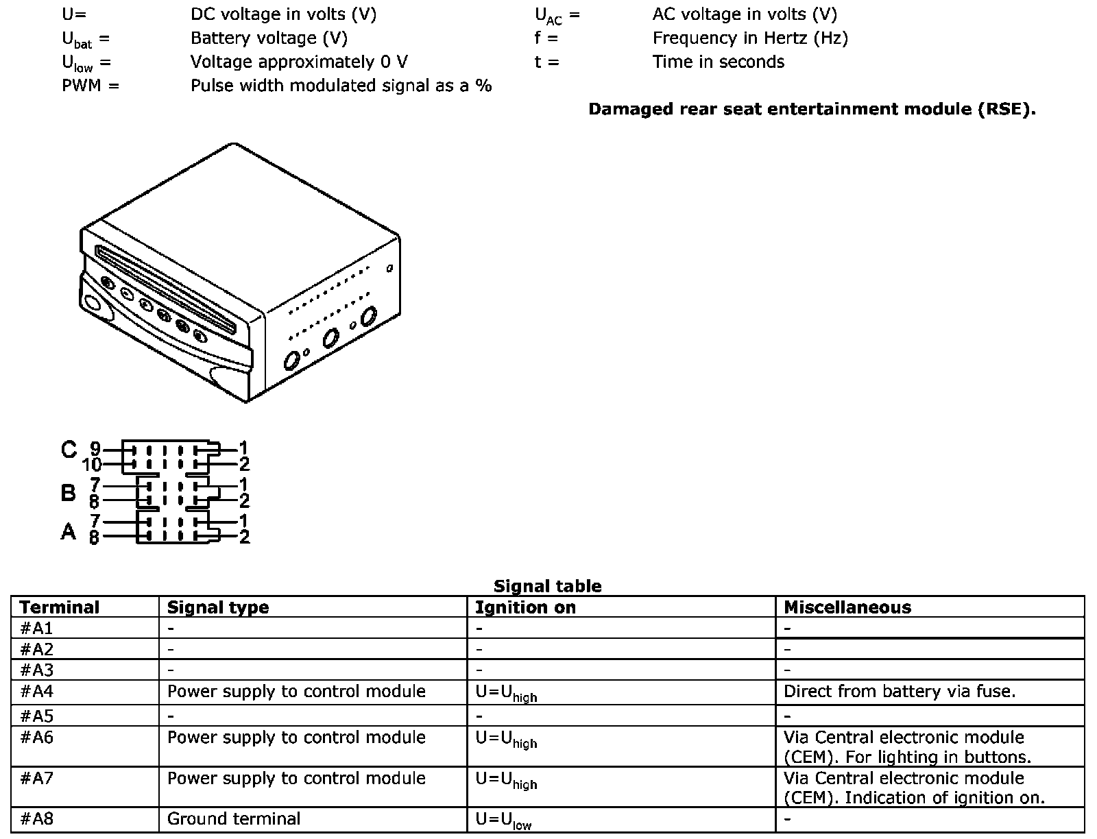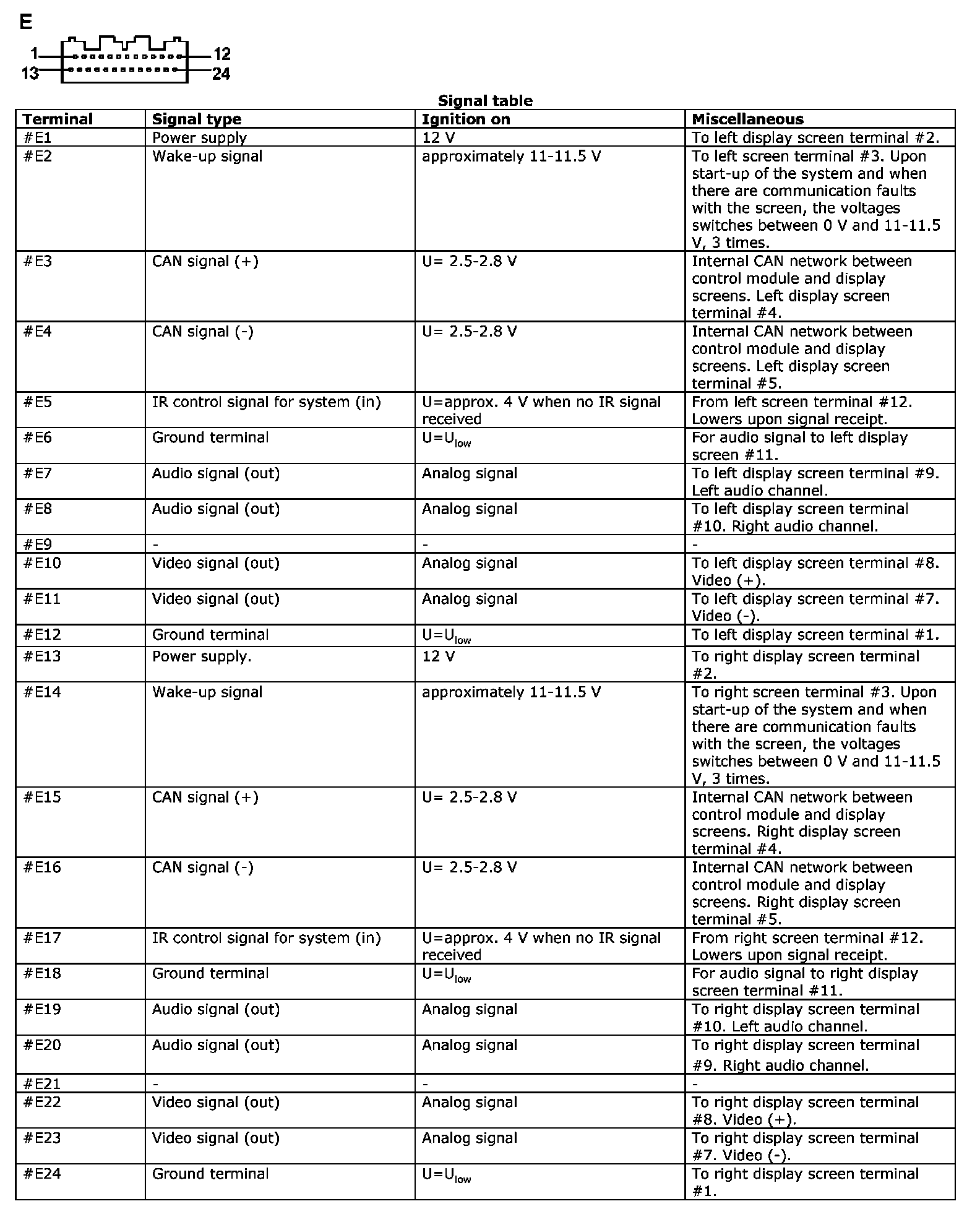 Signal specification, rear seat entertainment module (RSE), generation 4.1