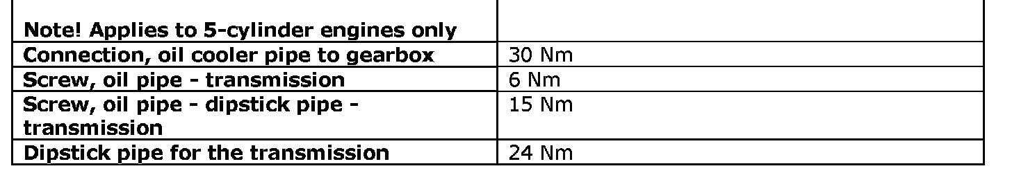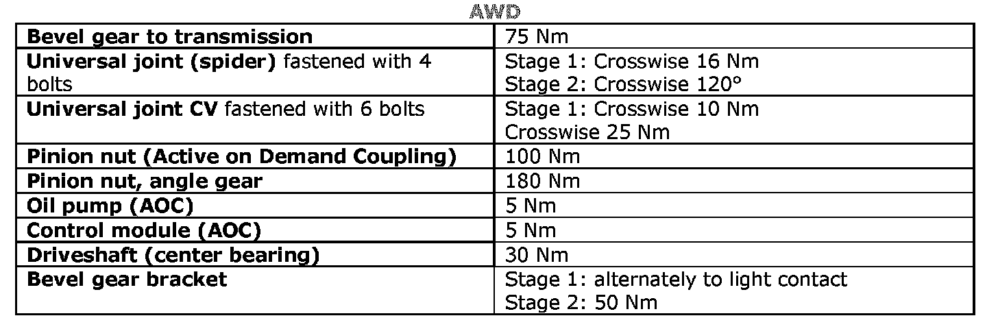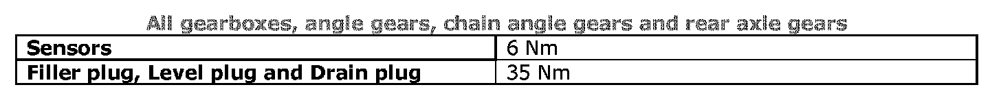 See the table below to find the tightening torques for components not included in the summary.