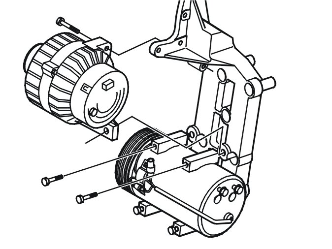 Note! If the vehicle is equipped with air conditioning (A/C), tighten the lower 2 x M8 screws for the compressor.