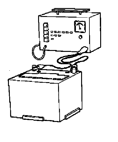 It is important that the battery voltage is normal (approximately 12 V) when testing the car system components. If necessary a battery charger can be connected during the test. Connect the battery charger to the battery terminals. Charge the battery for approximately 10 hours at the recommended current -maximum 6 A.