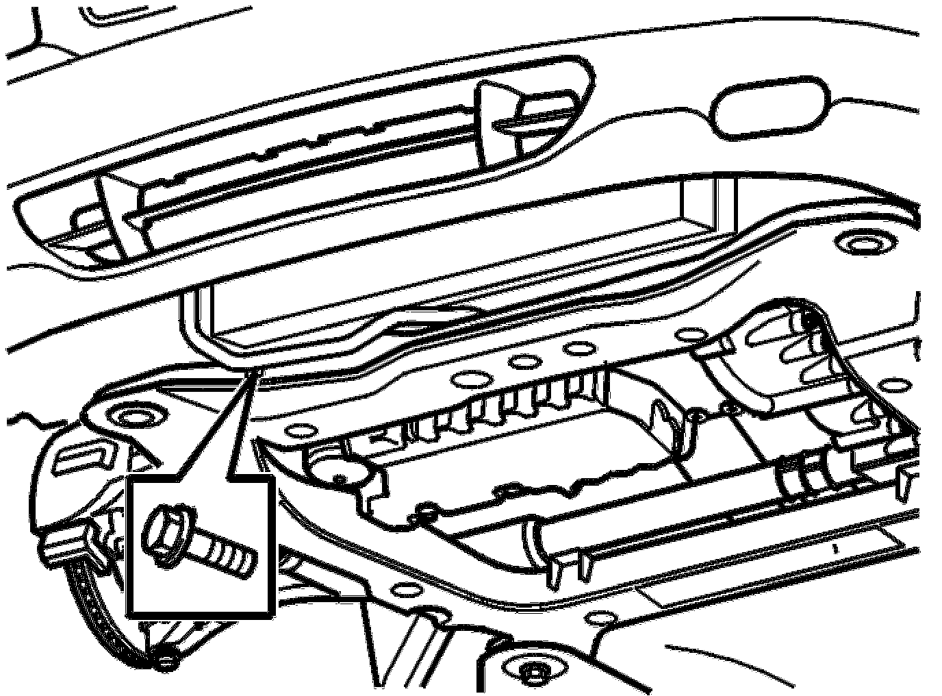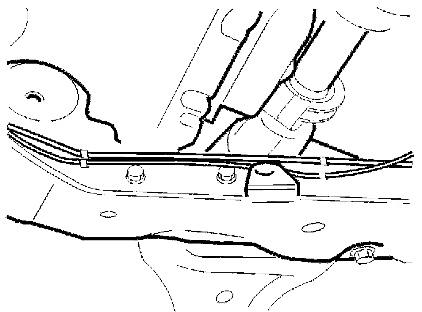 - Remove the fuel line for the engine block heater (if applicable) on the sub-frame from the snap fasteners.
