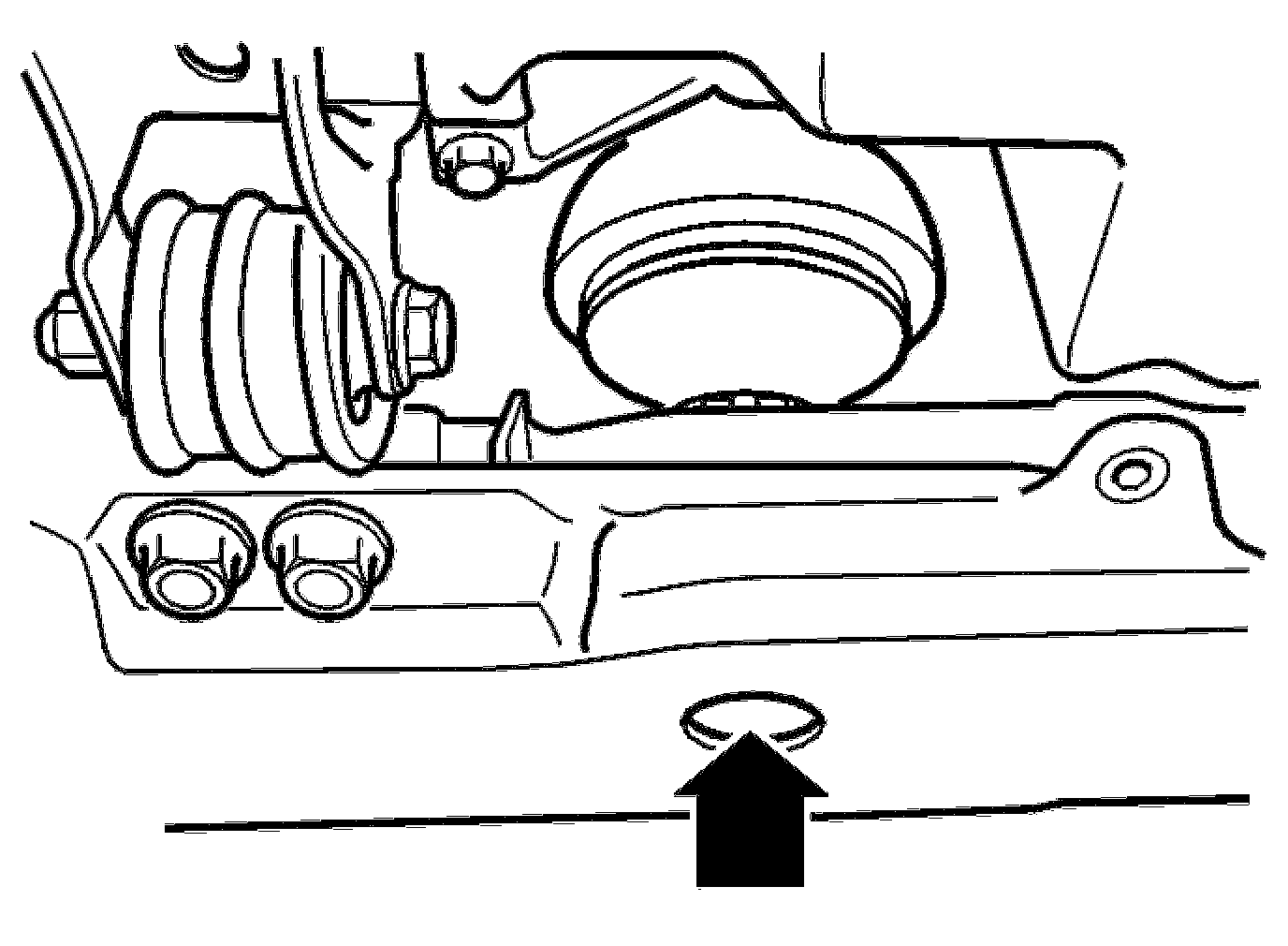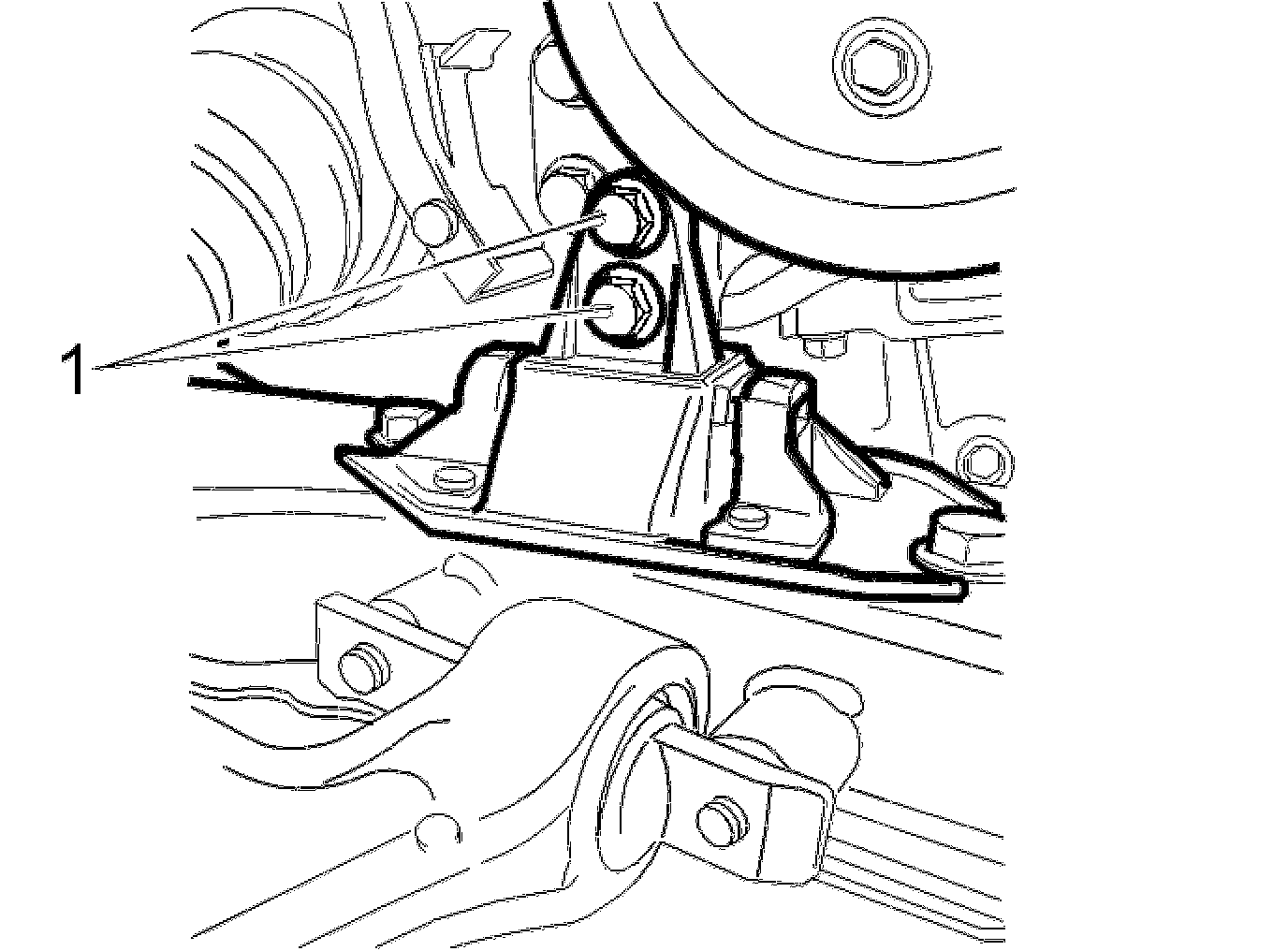 Install the front engine pad screw. Tighten to 50 Nm.