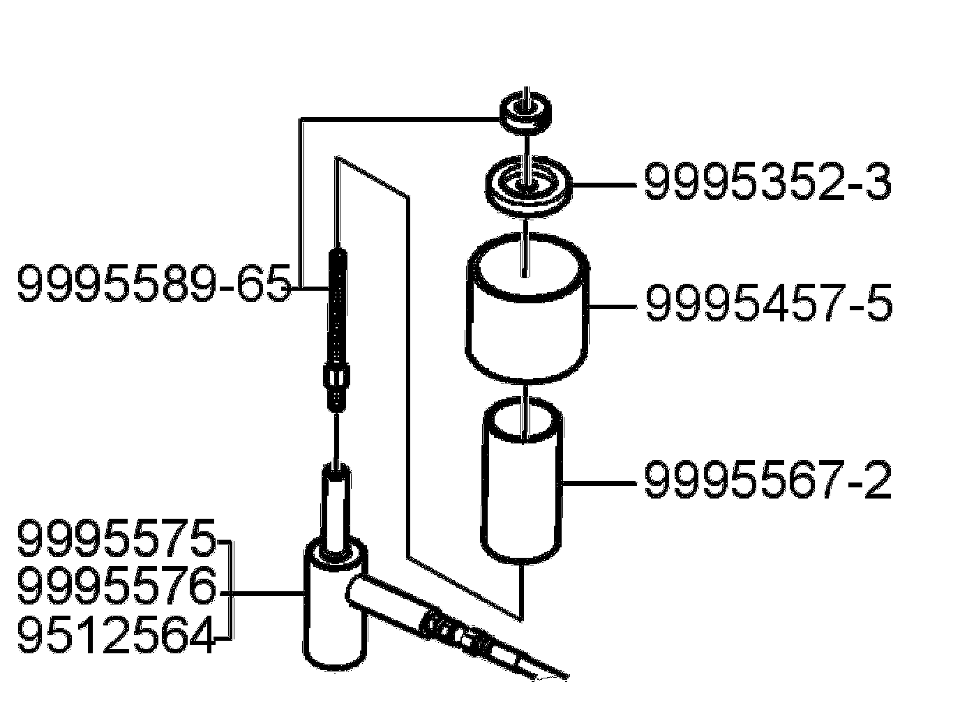 NOTE: It is arbitrary which of tools 999 5575, 999 5576 and 951 2564 is used.