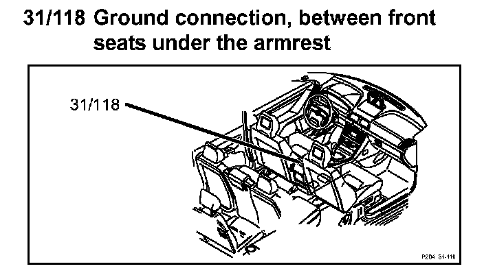 31/118 Ground Connection, Between Front Seats Under the Armrest