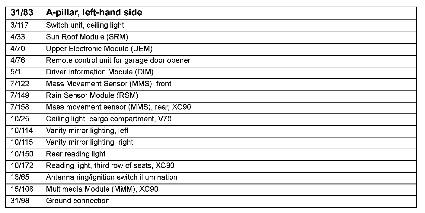 31/83 Ground Connection, A-pillar, Left Side: