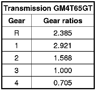 The value indicates the transmission gear ratio. The control module uses the input and output speeds to calculate the gear ratio. For the correct gear ratio see the table below