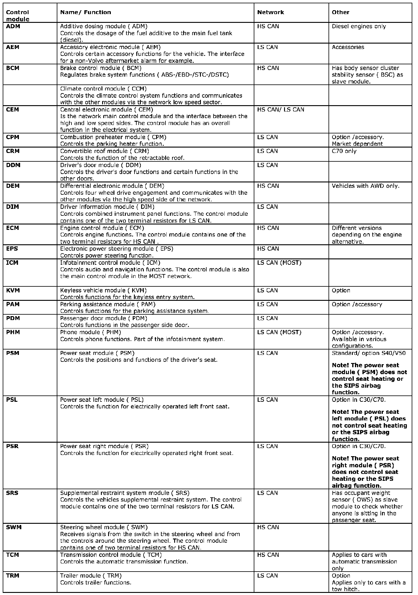 The number of control modules in the CAN varies depending on the level of equipment, the vehicle model and the structure week.