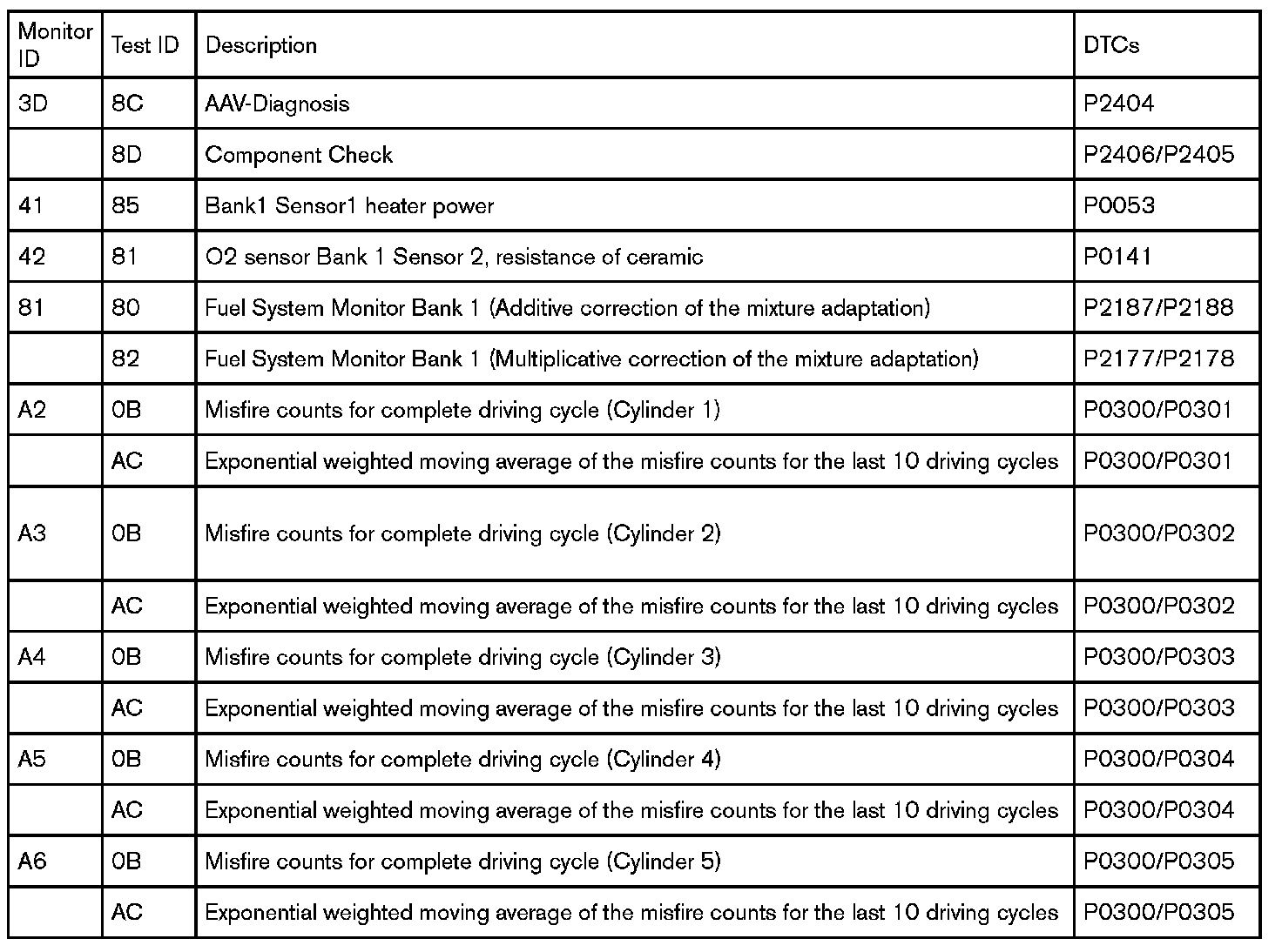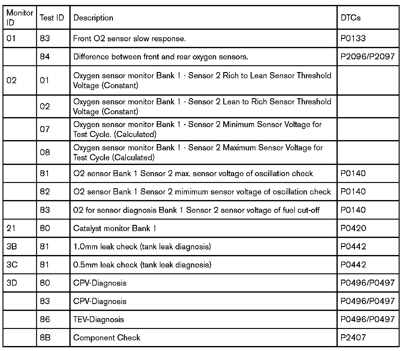 The request message for test values includes an On-Board Diagnostic Monitor ID (see below) that indicates the information requested.