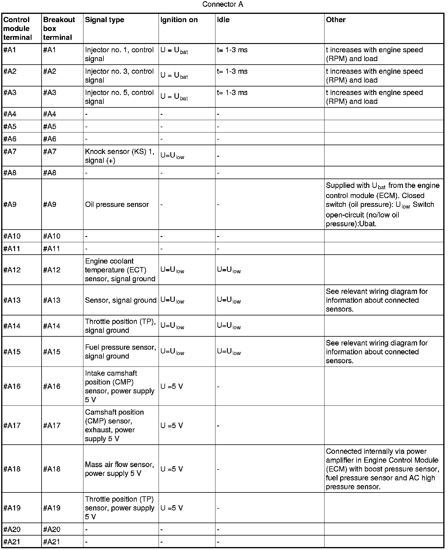 All values given below are between the terminals stated in column 1 and breakout box terminal in the terminal) and terminal #B1 (#C1) unless otherwise indicated in column 6 (Miscellaneous).