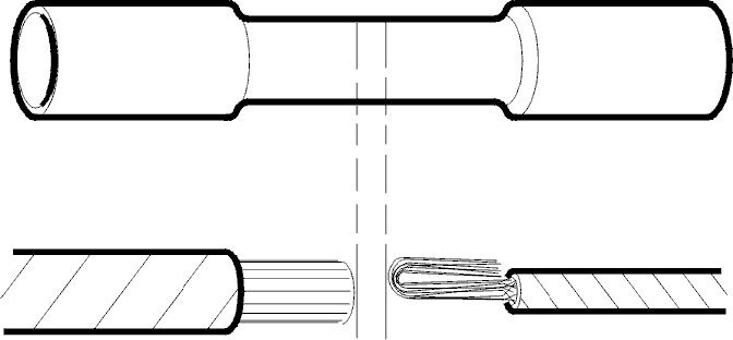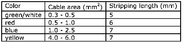 Strip both ends of the cable according to the table above. Use: 951 2620.