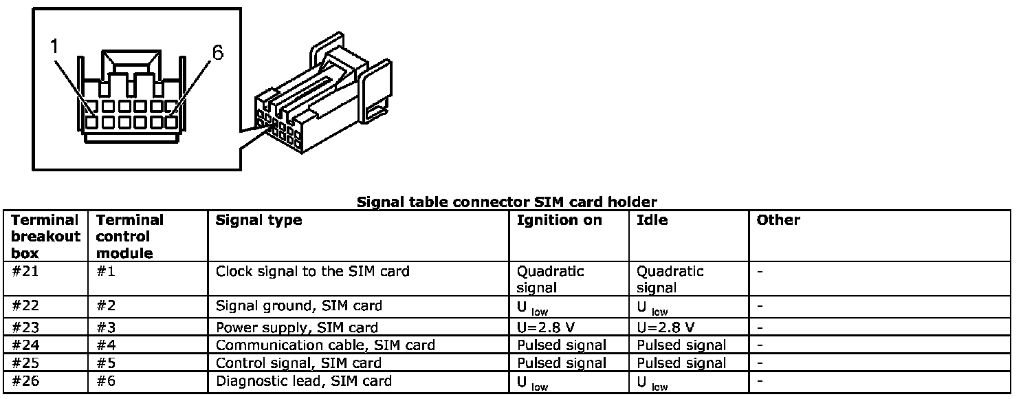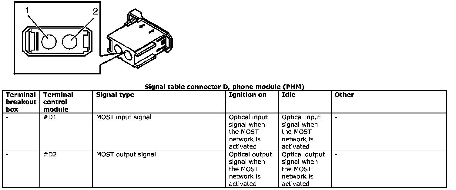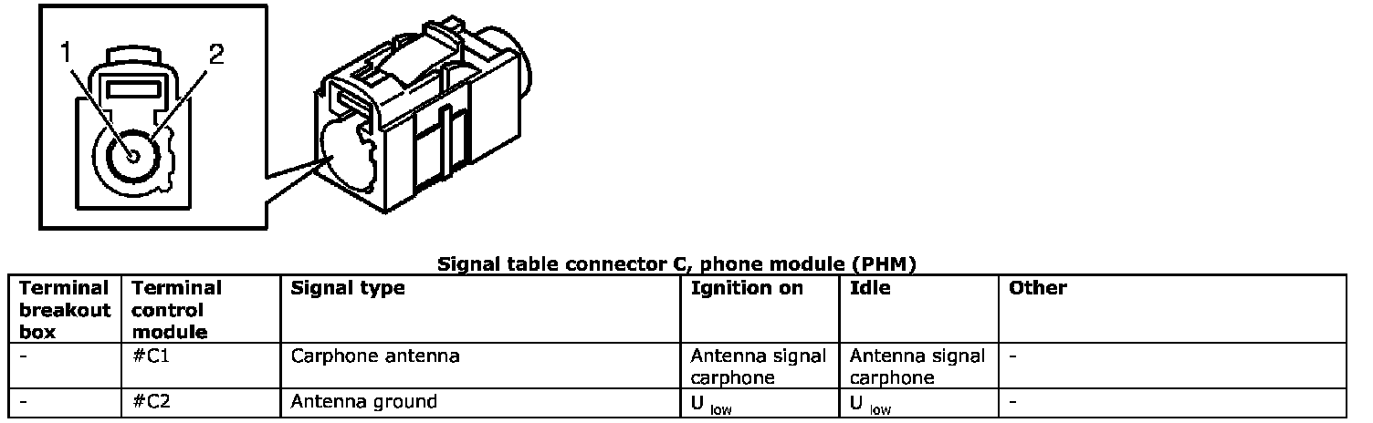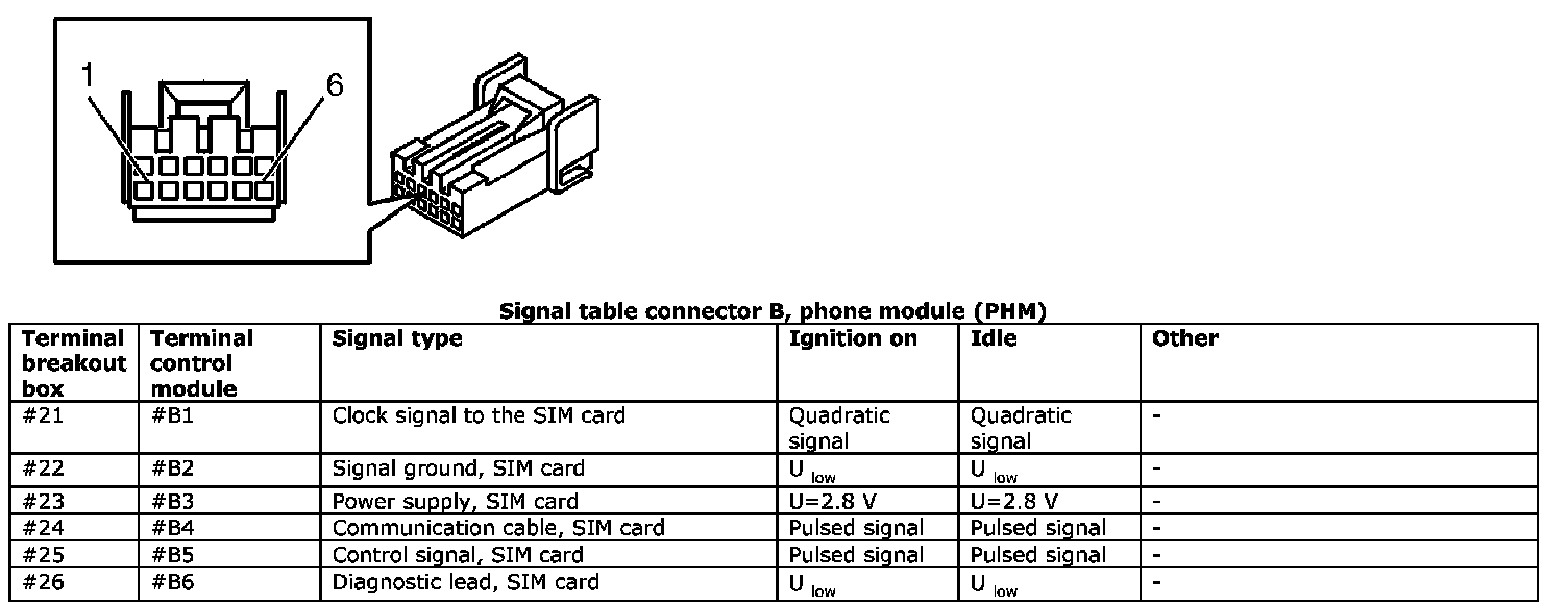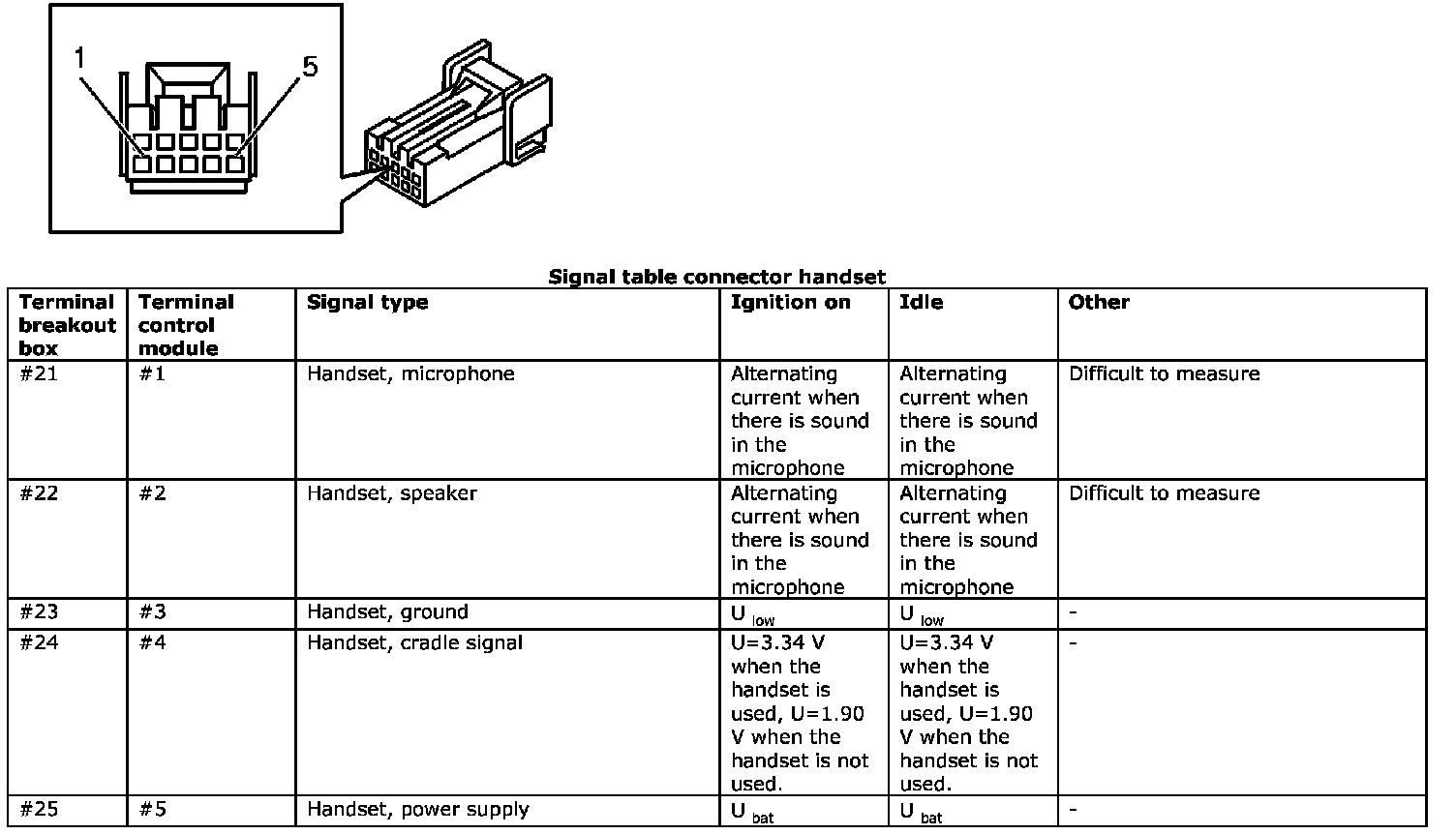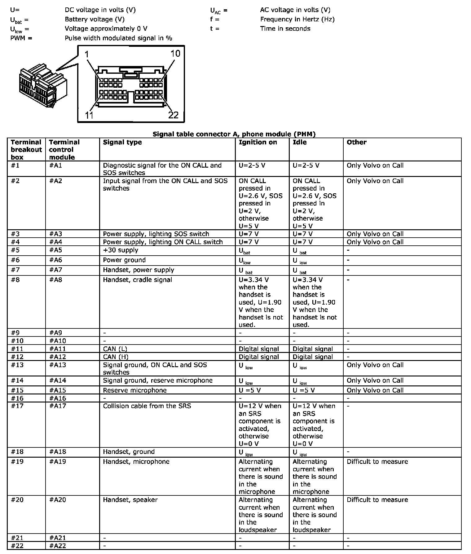 All the values given below are between the terminals stated in column 1 and terminal #A6 in column 2 (power ground). This applies unless otherwise indicated in brackets.